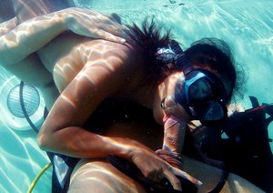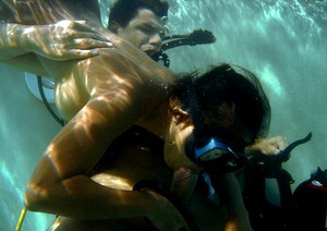 Классный секс под водой спортсмена дайвера и его любовницы