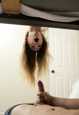 Миленькая соска язычком шекотит головку полового члена напарнику