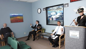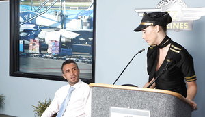 Стюардессе в сексуальной униформе обрызгали личико капельками спермы
